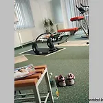 Hay un gimnasio con una amplia gama de deportes.